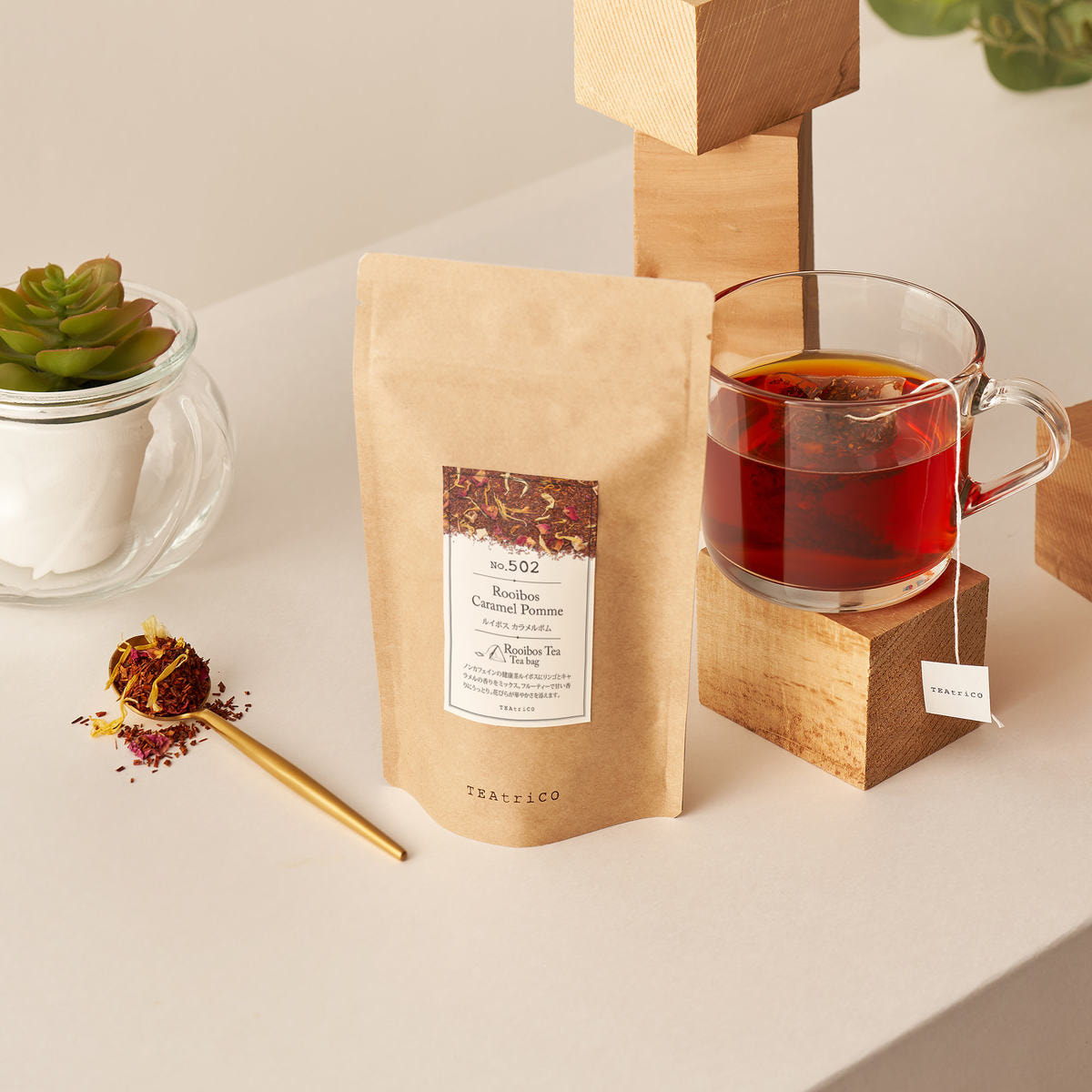 ノンカフェインの健康茶ルイボスにリンゴとキャラメルの香りをミックス。