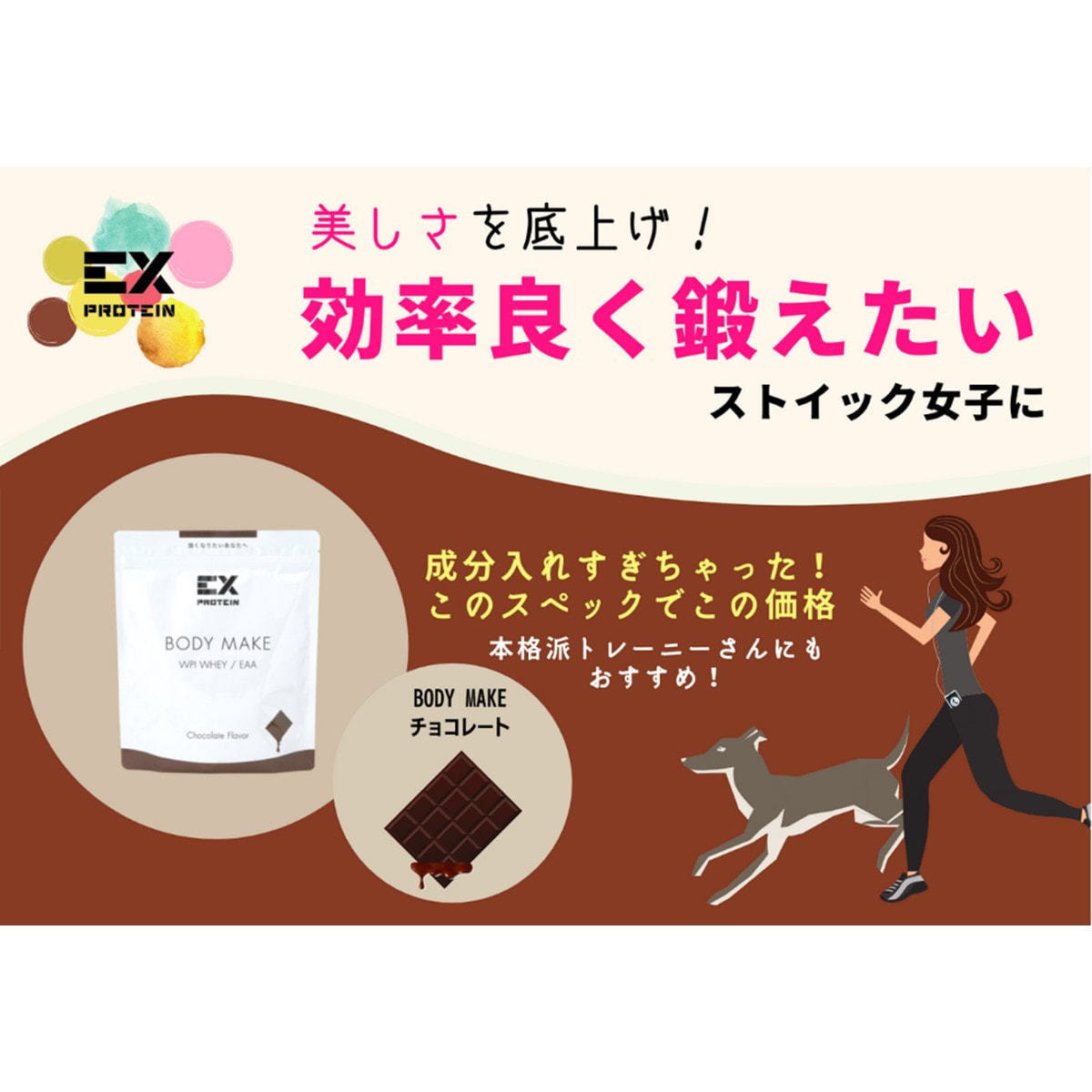 商品名:EX-BODY MAKE WPI ホエイプロテイン チョコレート風味 360g