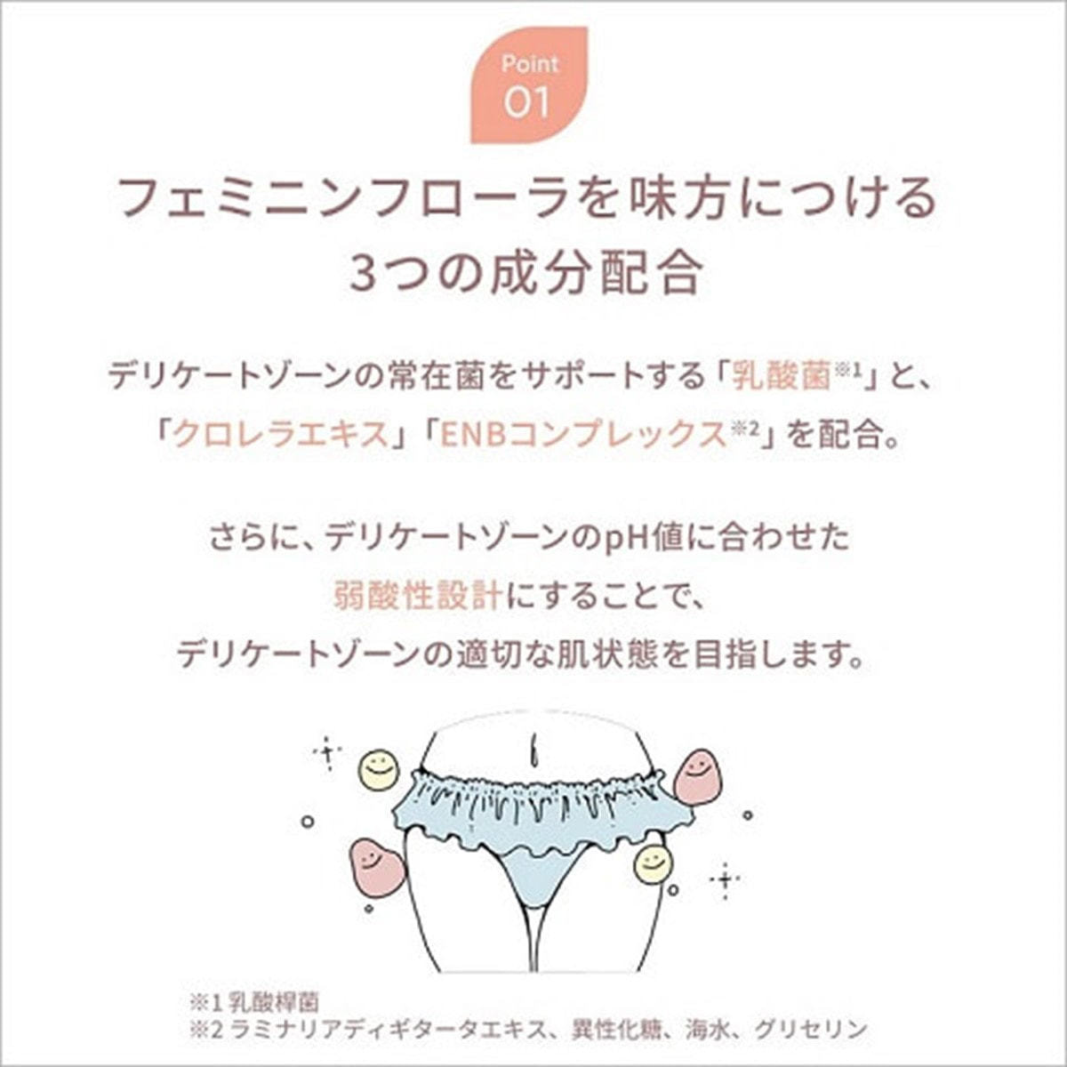 デリケートゾーンの常在菌をサポートする「乳酸菌※」と、「クロレラエキス」「ENBコンプレックス」を配合。