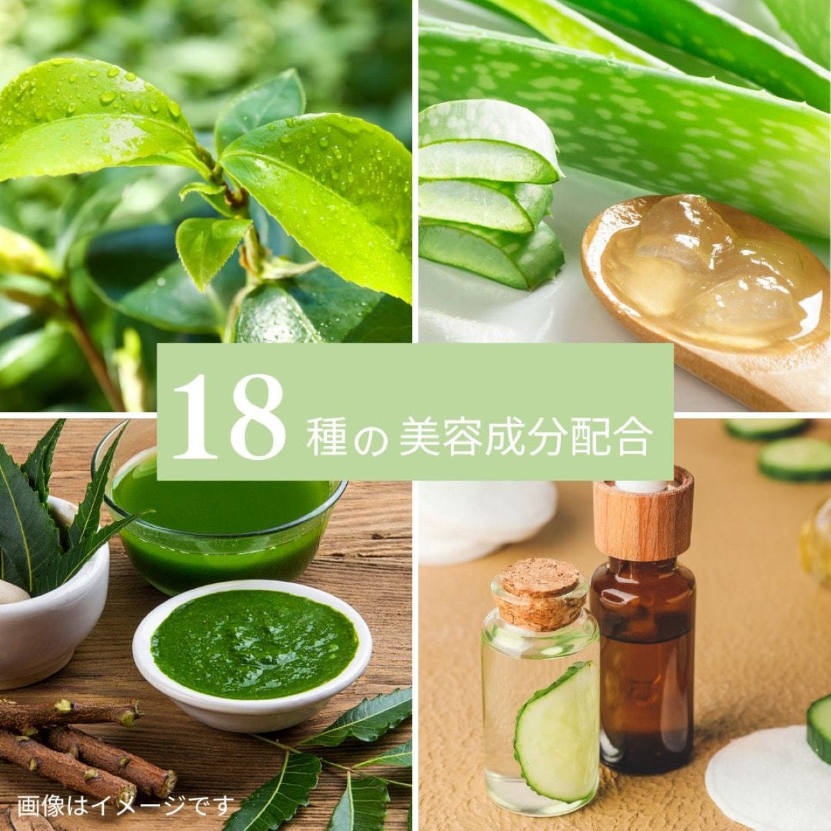 アロエベラ葉エキス、チャ葉エキス、メリアアザジラクタ葉エキス、キュウリ果実エキス、など
