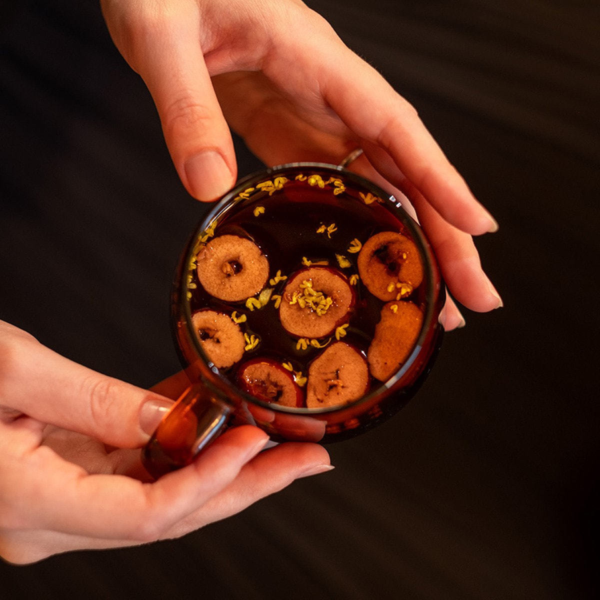 〈桑の実〉のジューシーさ、〈ナツメ〉の自然な甘み、〈桂花〉の華やかな香りが、沈んでしまったり、高ぶりすぎてしまった状態から、もとの自分に戻してくれるそんなお茶です。