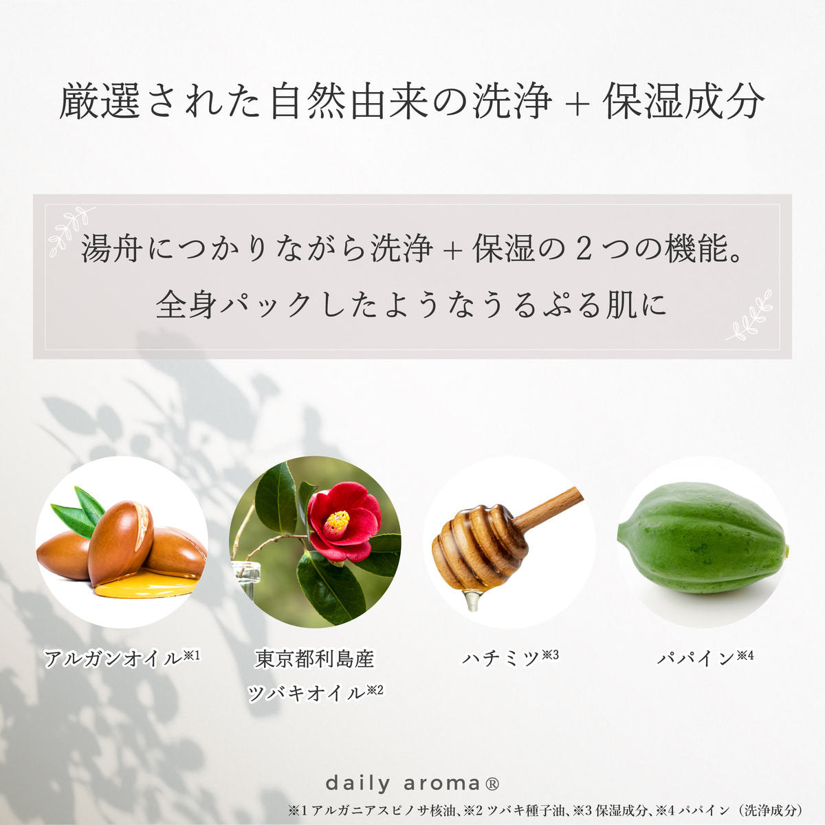 パパイン酵素が古い角質やタンパク汚れを優しく洗い落とします。