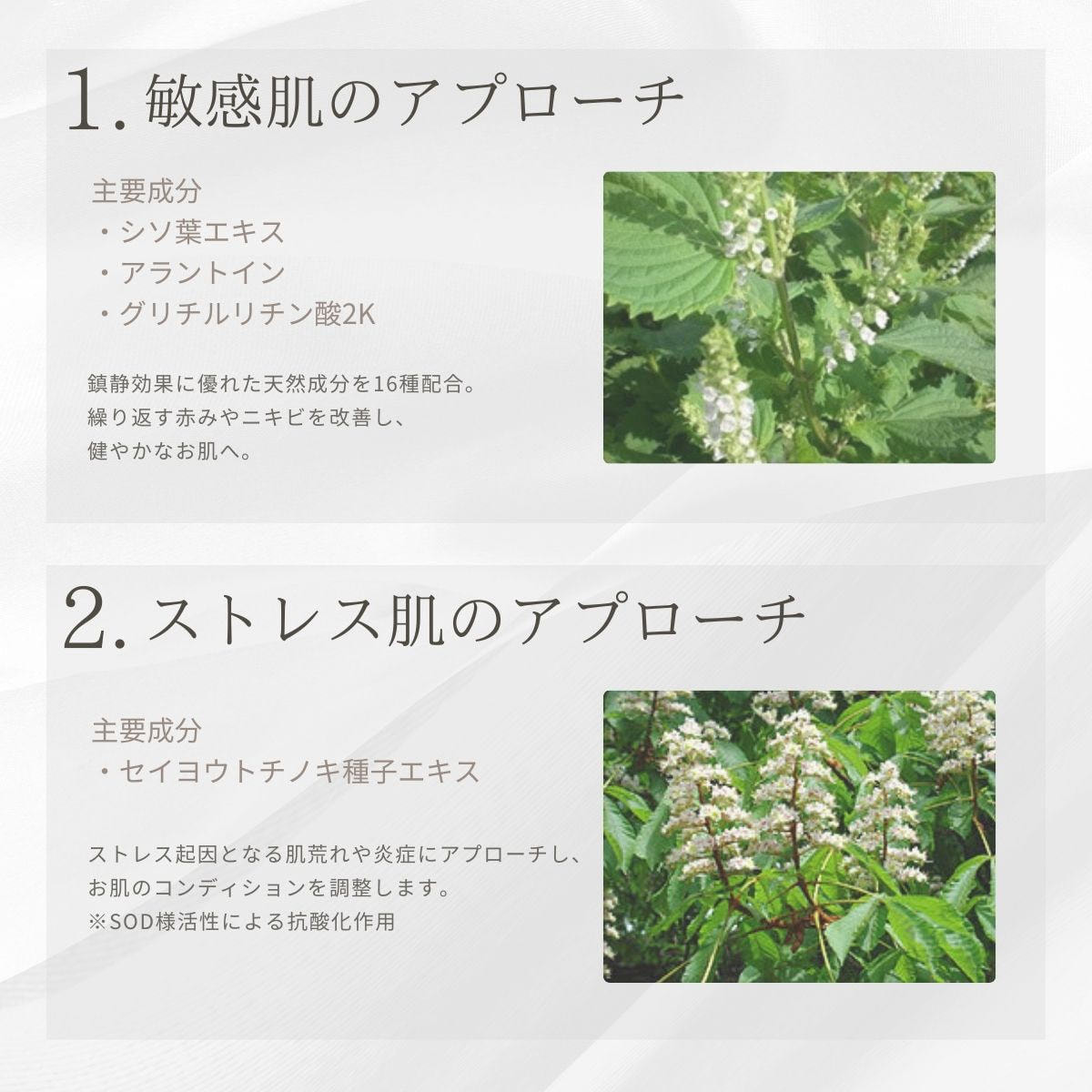 22種類の天然植物由来成分をたっぷりと配合し、注目のエイジング成分もプラス。