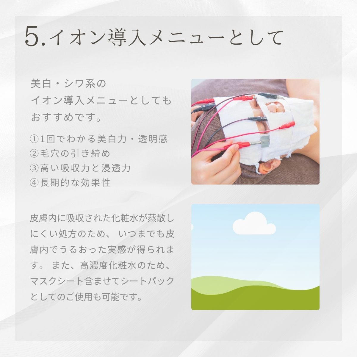 最後の整皮はもちろん、イオン導入液としてもご使用いただけます。