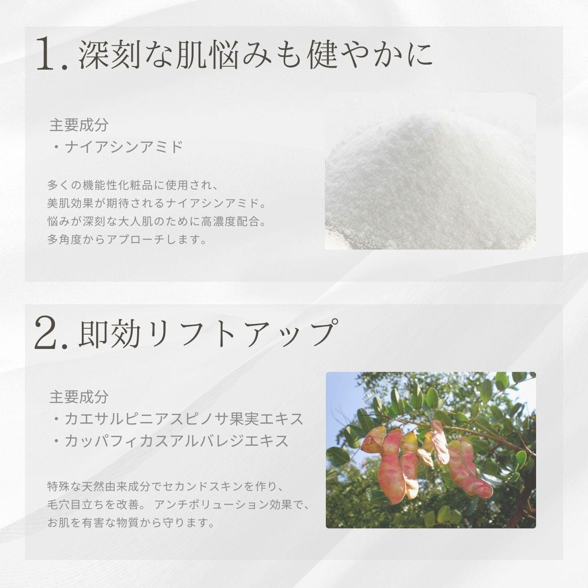その優れた効果を取り入れた高機能美容液は、細胞レベルで肌の若々しさをサポートし、より美しい肌へと導きます。