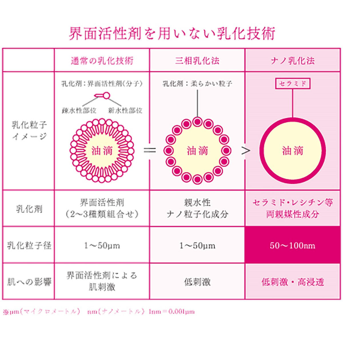 界面活性剤を使わない乳化技術、『高圧乳化装置』によって高浸透、高保湿、低刺激。