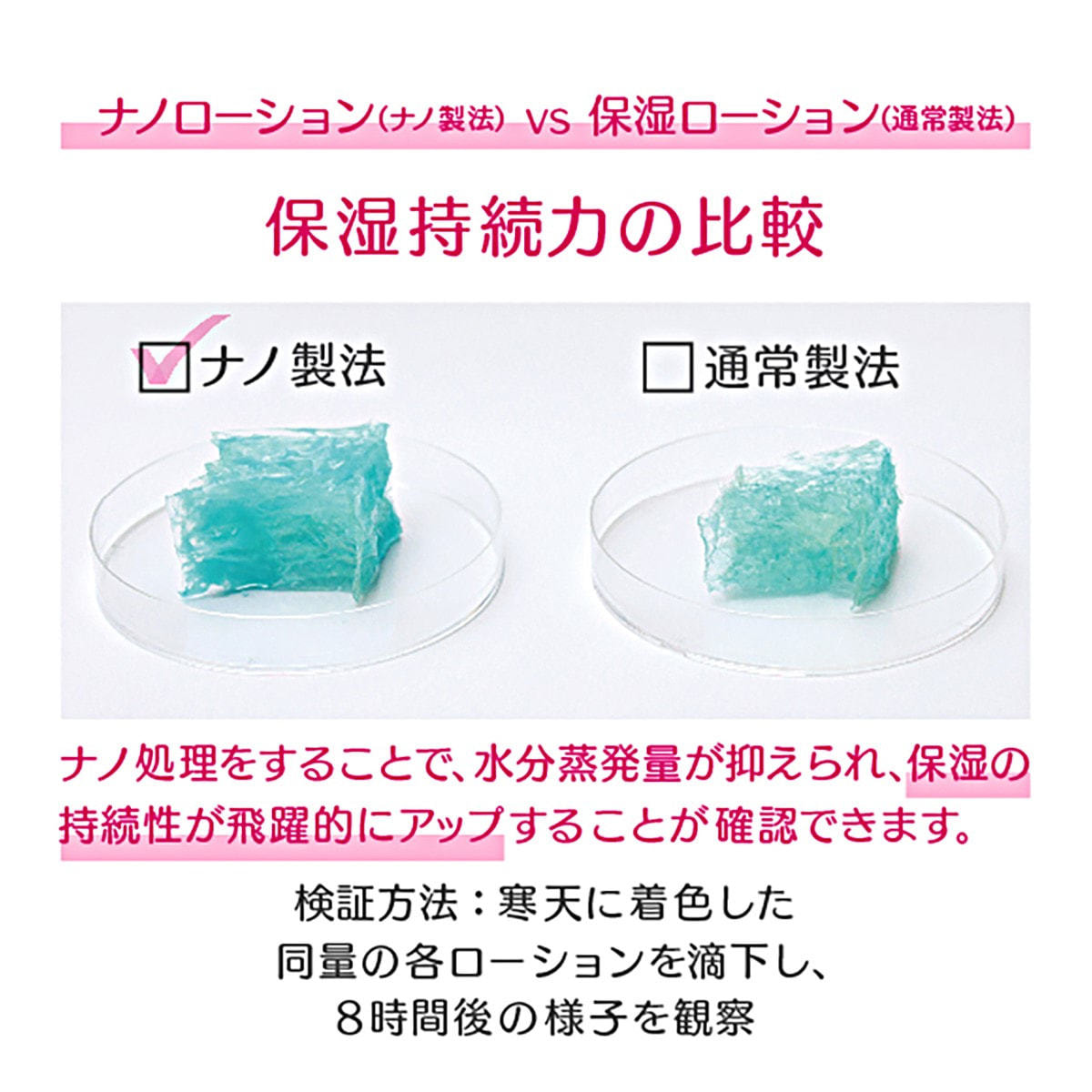 油溶性ビタミンC誘導体や安定型ビタミンA誘導体、栄養豊富な植物エキスを含む14種の美容成分を従来のナノ技術に対し、約1/20サイズにナノカプセル化。